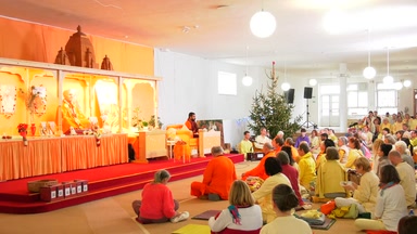 Satsang from Linz, Austria. Translation of the bhajan Sri Madhavanandaji Prabhu Ananda Dijo. This bhajan was written by our Gurudeva many many years ago. He requests Holy Guruji to grant us happiness and accept our service. Explanation and practice of Ashwini mudra, AUM chanting and Bhramari pranayama.