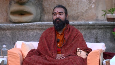 Morning satsang with Vishwaguruji from Rijeka Ashram, Croatia. Bhajan singing. We should be careful with our bodies and we should live very healthily. Our practice is very important and also our good food. We are really yogis. We have learnt many things that are really important in yoga. Real yogis should practise yoga every day. We help other people to become spiritual. Some people eat cats and kill them in a very cruel way. We should feel every creature in our hearts. The story of a man who wanted to see God. The story of an Indian lady living near Rupavas who became a holy person. The other story is of a woman in Gujarat who doesn't eat and doesn't drink anything.