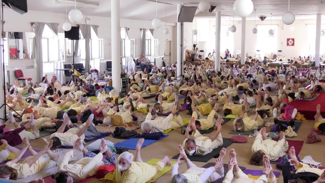 Practising relaxation with Vishwaguruji