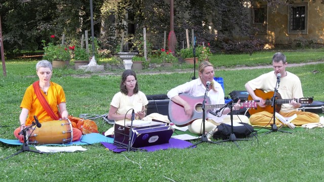 Evening satsang with Vishwaguruji from Rijeka Ashram, Croatia.Singing Bhajans.